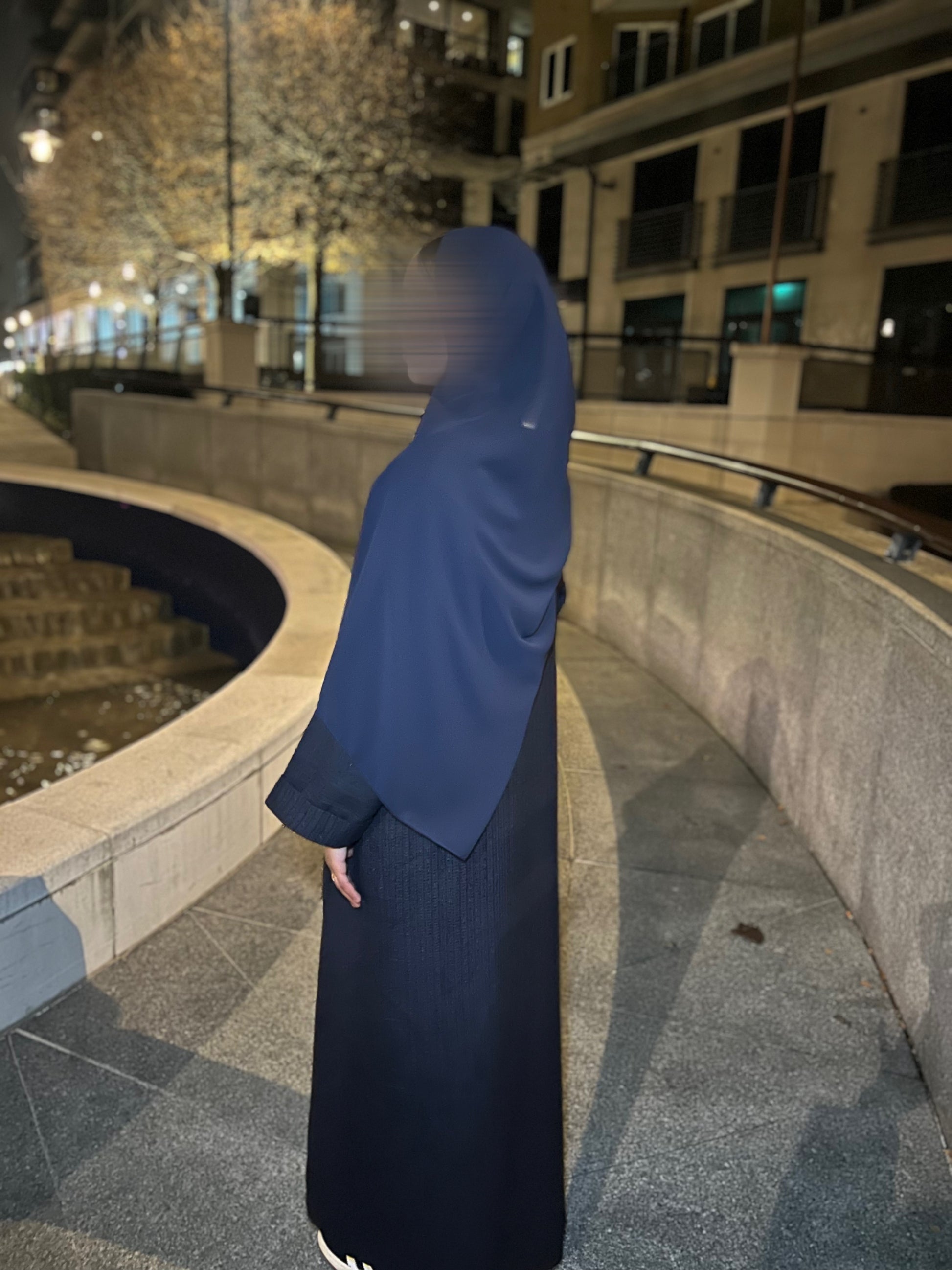 The Ihsaan Abaya Jacket is a sophisticated three-piece winter set designed for a polished and elevated appearance. The structured abaya jacket is paired with a coordinating inner dress and matching hijab to create a complete outfit.